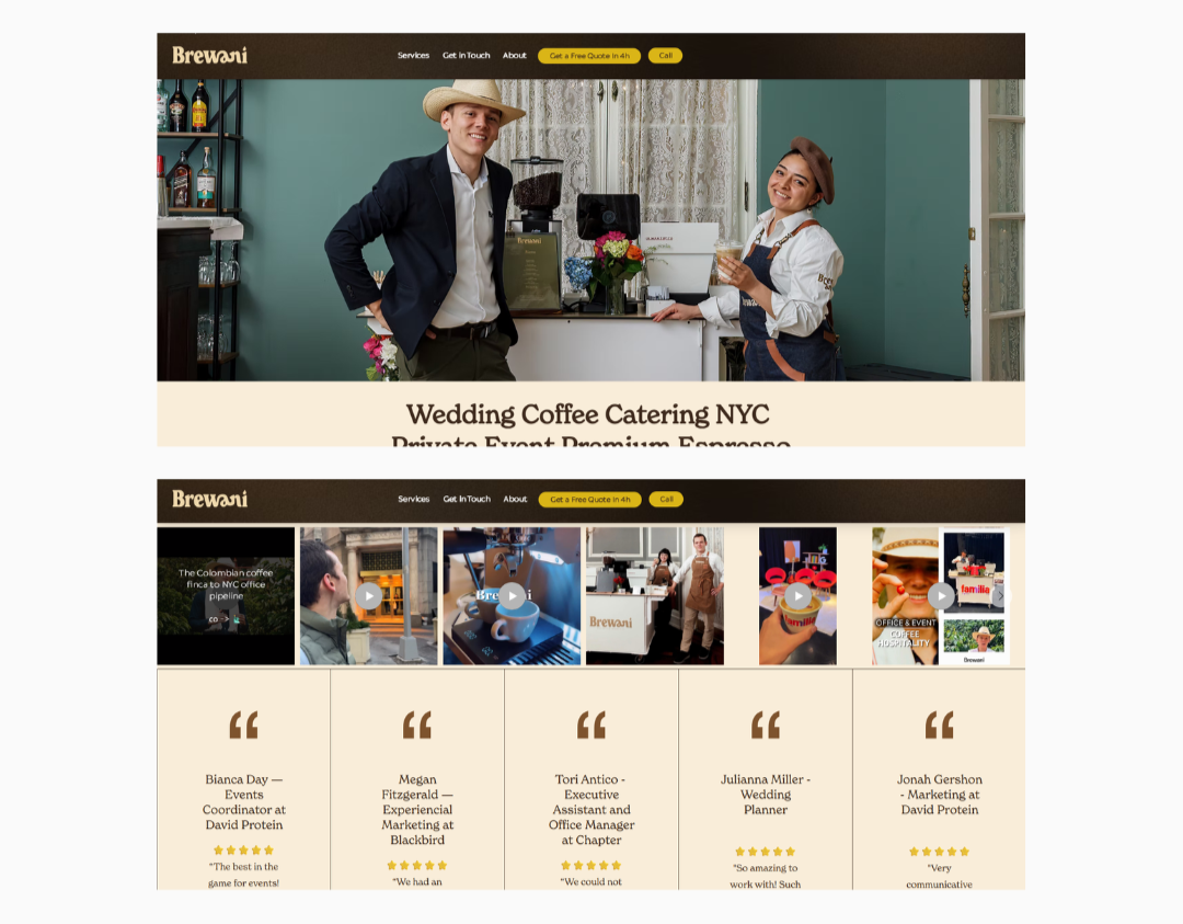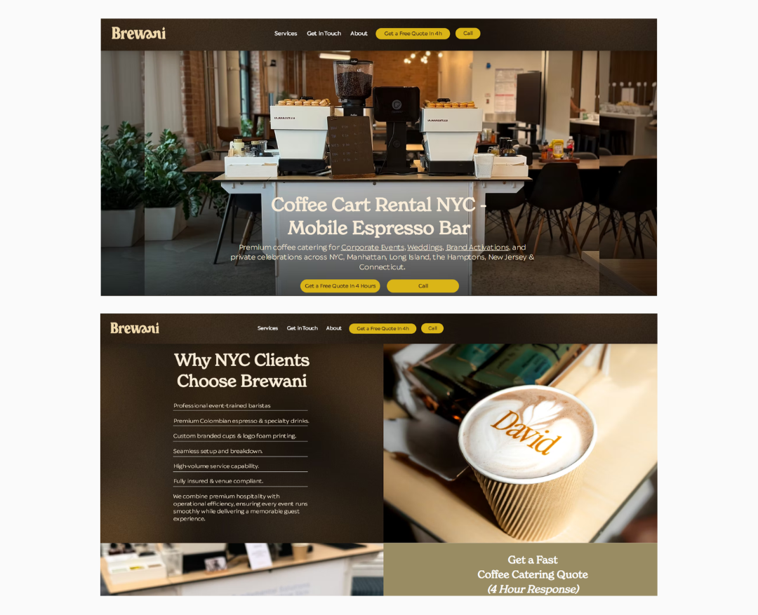 Brewani, a fast-growing coffee cart catering company in NYC, had already invested in a strong brand identity, but their website told a completely different story.